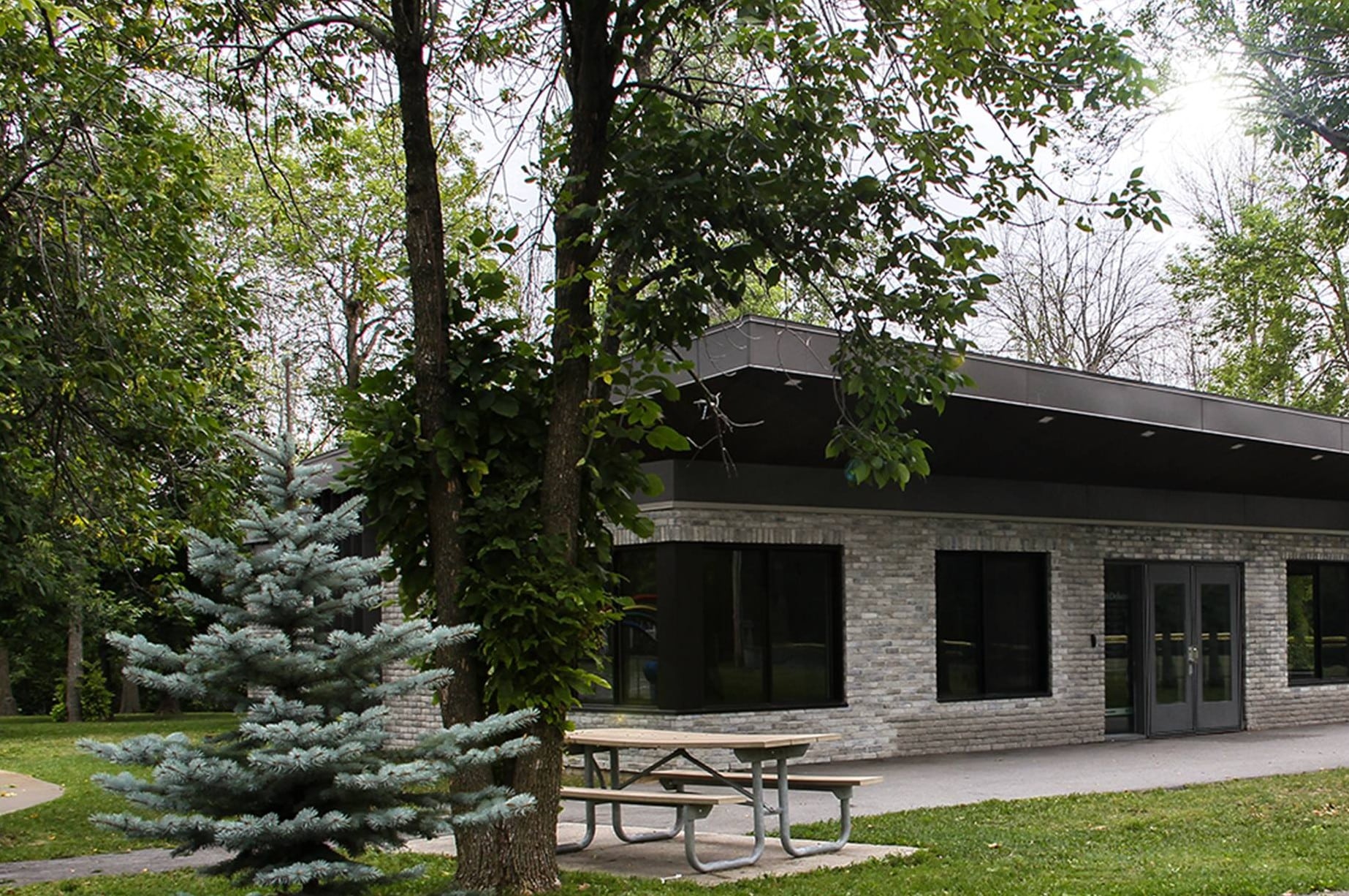 La firme avait le mandat de rénover un chalet de parc existant. Le bâtiment présentait au départ peu d’intérêt architectural. La ville souhaitait en rajeunir l’apparence, mais disposait d’un budget restreint. Notre mandat comprenait la production des plans et devis, le choix des matériaux et la surveillance du chantier.