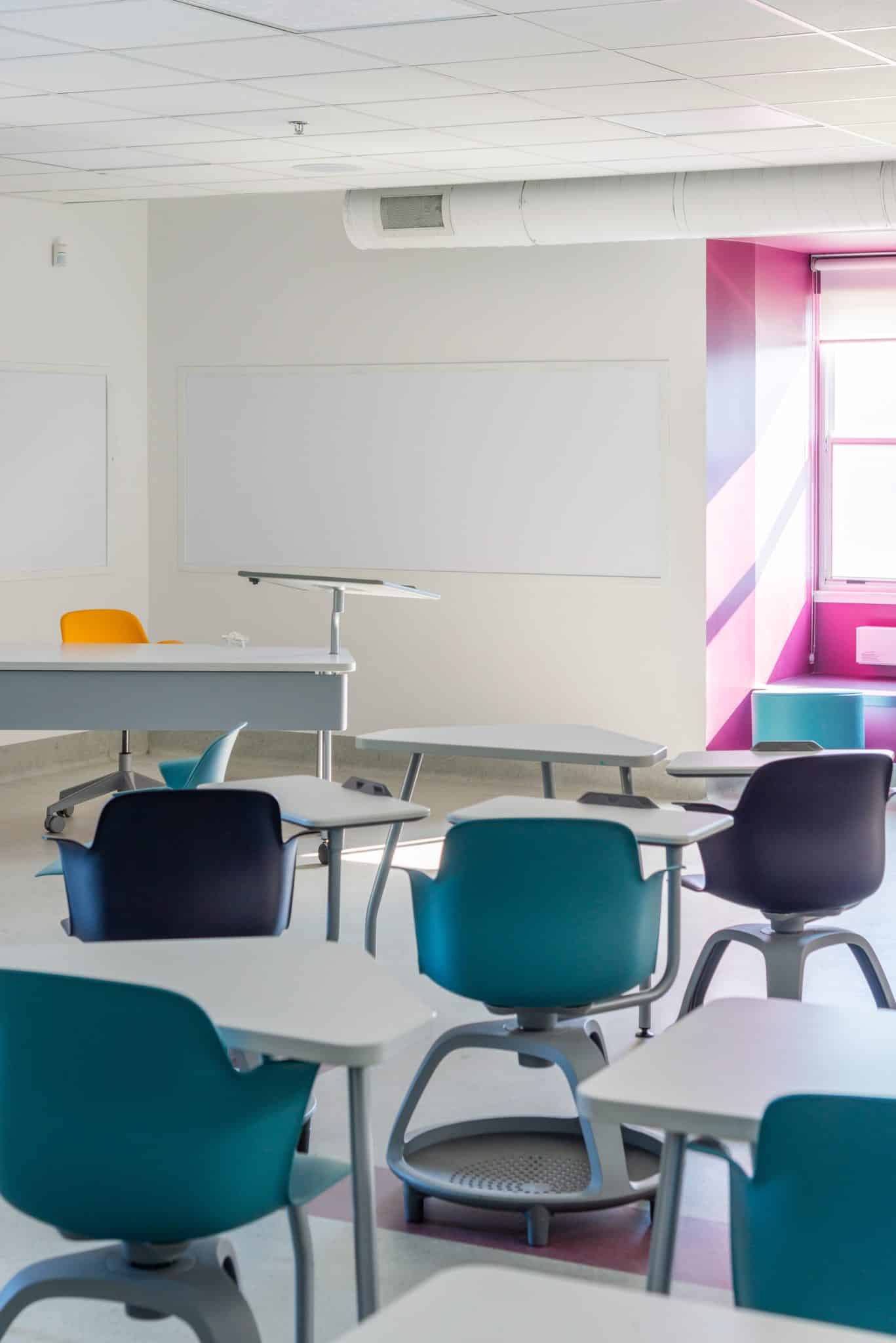 L’ensemble du bâtiment sera ainsi transformé afin d’accueillir, sur trois étages, six espaces d’apprentissage et de collaboration. Aménagés en grande partie avec du mobilier mobile, ils permettront une flexibilité accrue pour un apprentissage ludique et diversifié, permettant en outre une collaboration entre les élèves d’un même espace, ainsi qu’entre les élèves d’espaces connexes.