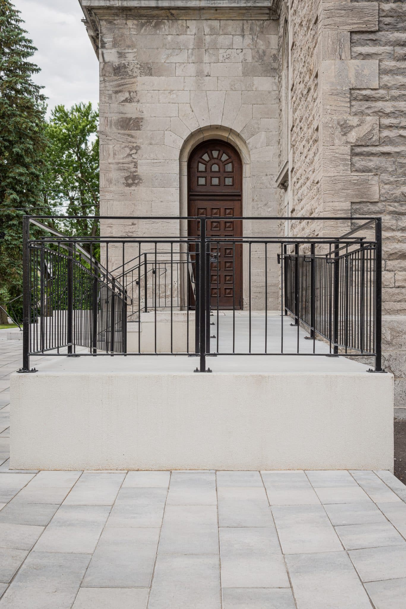Notre mandat a consisté à restaurer le parvis dans le respect des caractéristiques architecturales et patrimoniales du lieu, tout en adaptant l’espace aux besoins contemporains de sécurité, d’accessibilité et de durabilité.
